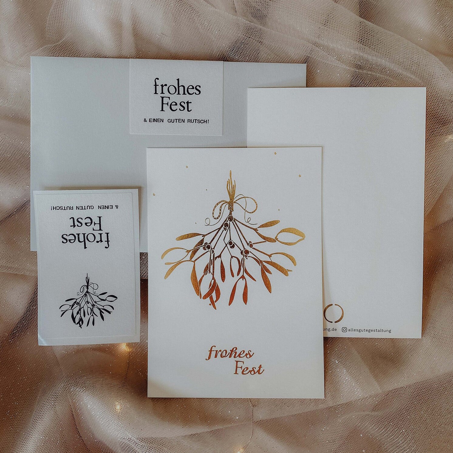 ⇾ VEREDELTE WEIHNACHTSKARTE MISTELZWEIG IN GOLD